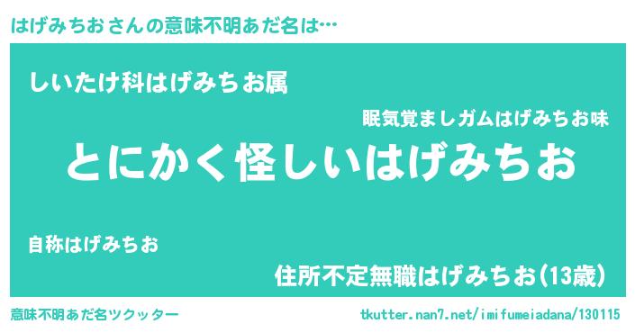 | 男性向けラノベタイトル風あだ名 | 『はげみちおに滅ぼされるだけの簡単なお仕事です』 |