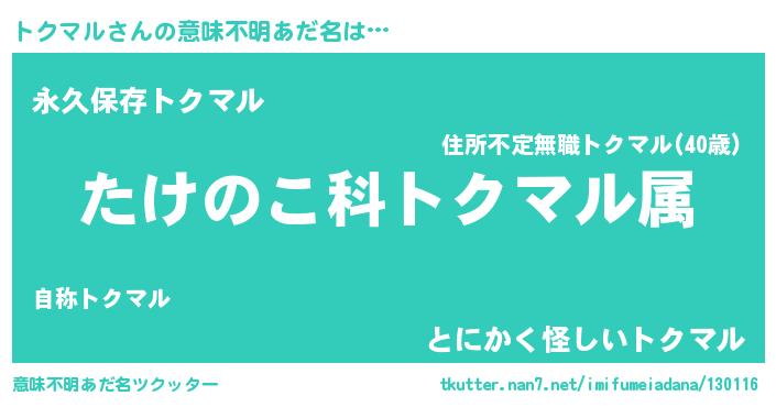 | ヘコむあだ名 | 『トクマル(苦笑)』『トクっぺ』 |
