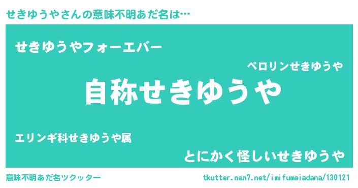 | 肩書あだ名 | 『せきゆうや閣下』『せきゆうや国家主席』 |