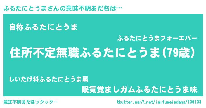 | 料理風あだ名 | 『ふるたにとうまのカルパッチョ風』 |