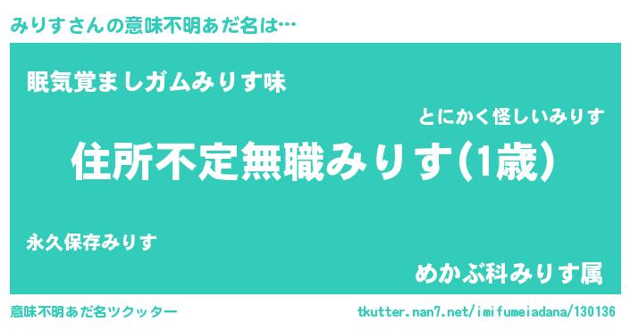 | 料理風あだ名 | 『みりすのカルパッチョ風』 |