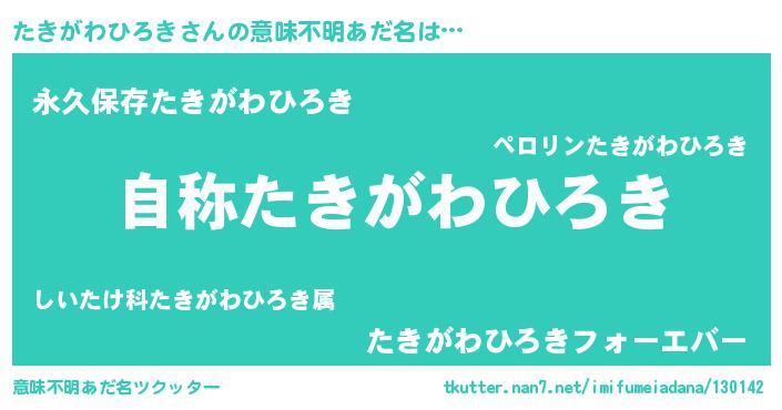 | 可愛いあだ名 | 『たきうちぇる』『たきがわひろきママ』 |