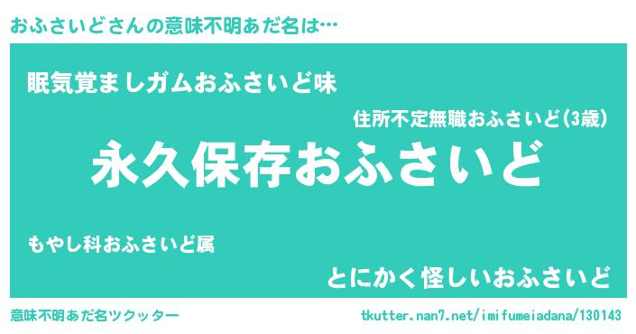 | ヘコむあだ名 | 『おふさいど(遠い目)』『おふぷりん』 |