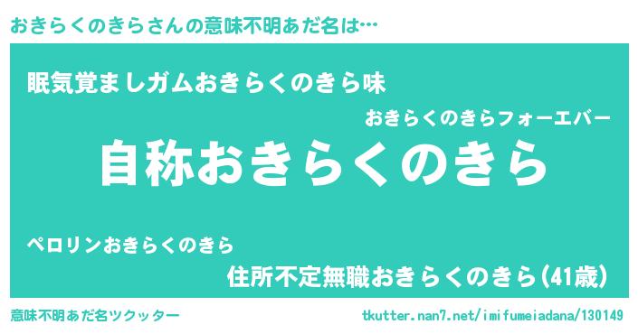 | 女子向けラノベタイトル風あだ名 | 『おきらくのきらなんてお断りですっ。』 |
