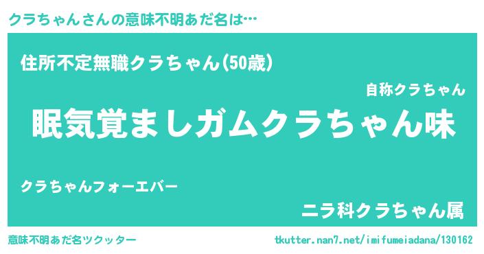 | ヘコむあだ名 | 『豆乳』『クラにゅー』『クラ太郎』 |