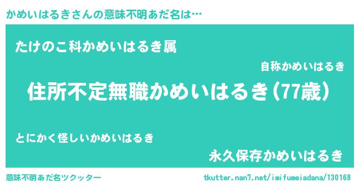 | ヘコむあだ名 | 『かめいはるき(苦笑)』『かめっぺ』 |