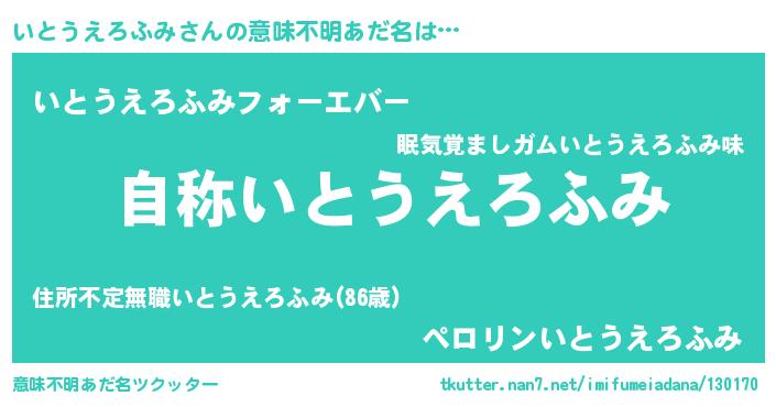 | 男性向けラノベタイトル風あだ名 | 『Re:いとうえろふみから始める異世界生活』 |
