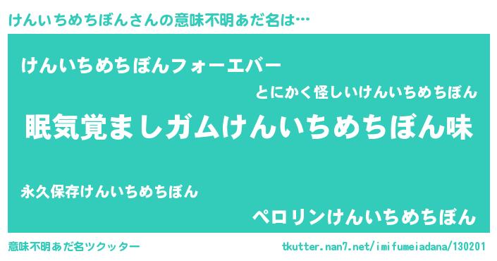| 男性向けラノベタイトル風あだ名 | 『ノーゲーム・ノーケンイチメチボン』 |