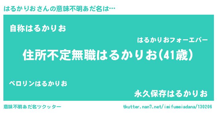 | ヒーロー風カッコイイあだ名 | 『仮面ハルダー』『最強戦士ハルカリオ』 |