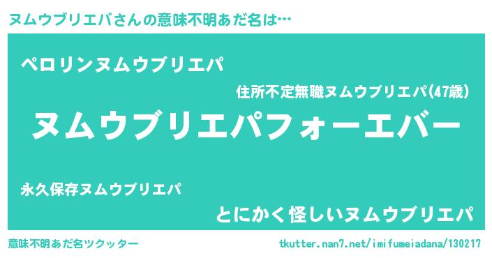 | 男性向けラノベタイトル風あだ名 | 『緋弾のヌムウブリエパ』 |