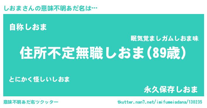 | ヘコむあだ名 | 『しおま(遠い目)』『しおお』 |