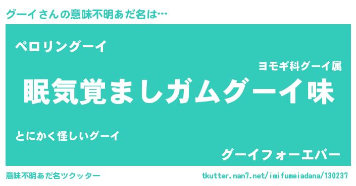 | 男性向けラノベタイトル風あだ名 | 『緋弾のグーイ』『はたらくグーイさま!』 |