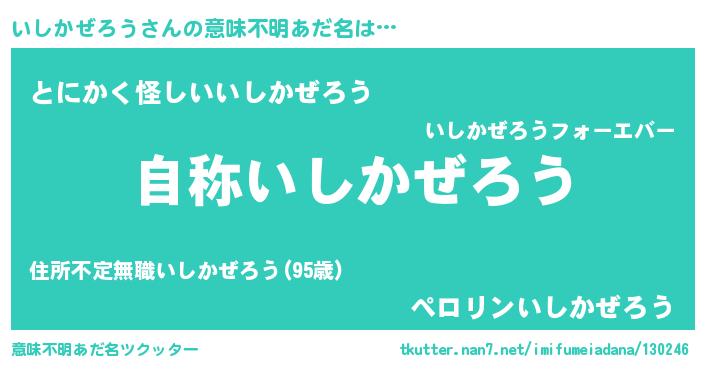 | 男性向けラノベタイトル風あだ名 | 『はたらくいしかぜろうさま!』 |