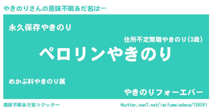 | 胡散臭い通販商品みたいなあだ名 | 『億万長者になれるブレスレット…その名も「やきのり」』 |