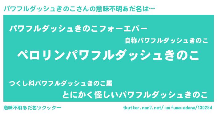 | 恥ずかしいあだ名 | 『プリティーパワフルダッシュきのこ』 |