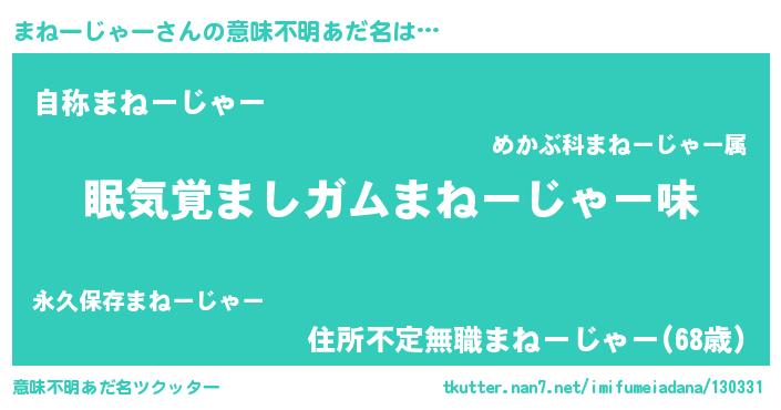| ヘコむあだ名 | 『まねーじゃー(爆)』『まねもー』 |