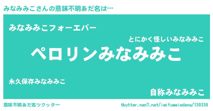 | ファンタジー風あだ名 | 『ミナフェル』『エターナルミナミミコー』 |