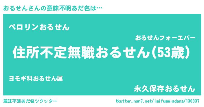 | ヘコむあだ名 | 『おるにゅー』『おるせん(苦笑)』 |