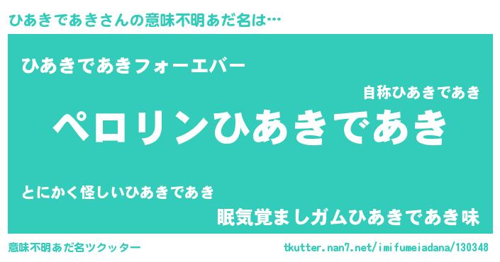 | 2回繰り返すあだ名 | 『ひあひあ』『だぶだぶ』『ひひああ』 |