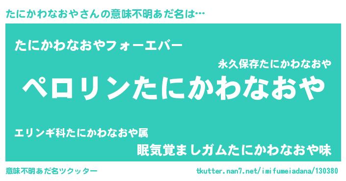 | ヒーロー風カッコイイあだ名 | 『スーパータニカワナオヤ』 |