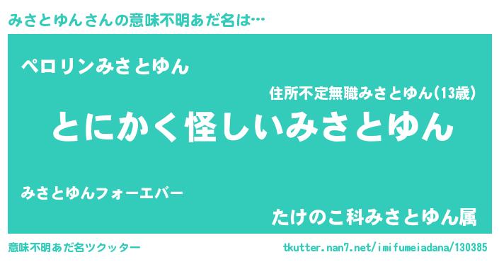| 男性向けラノベタイトル風あだ名 | 『みさとゆんの嫁は女の子じゃないと思った?』 |