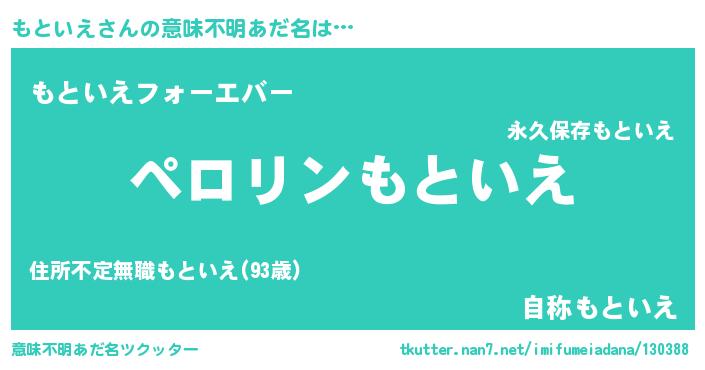 | ヒーロー風カッコイイあだ名 | 『スーパーモトイエ』『究極戦士モトイエ』 |