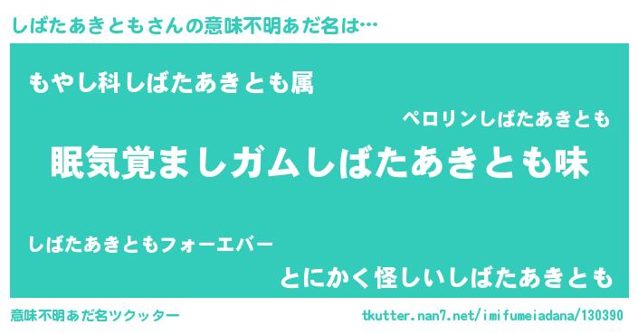 | 欧米人風あだ名 | 『アンジェラ・しばたあきとも』 |