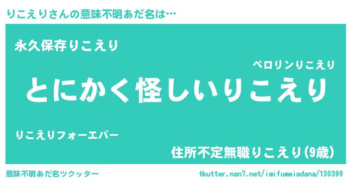| ヘコむあだ名 | 『りこを』『りこえり(遠い目)』 |