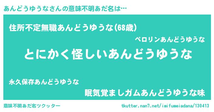 | 欧米人風あだ名 | 『ウサインあんどうゆうな』 |