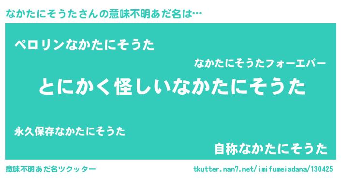 | ポケモン風あだ名 | 『ナカゴンZ』『ヒナカタニソウタ』 |