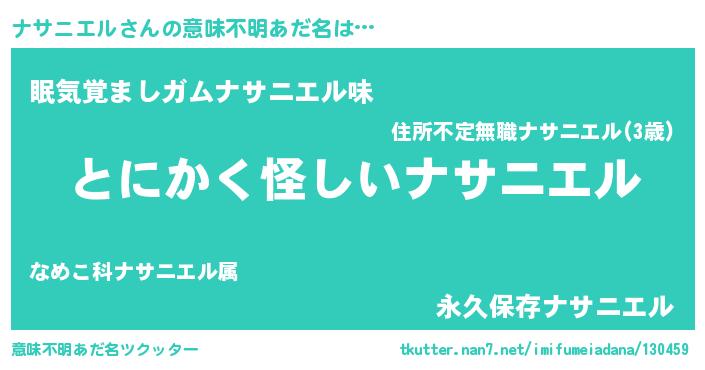 | 男性向けラノベタイトル風あだ名 | 『ナサニエルの嫁は女の子じゃないと思った?』 |