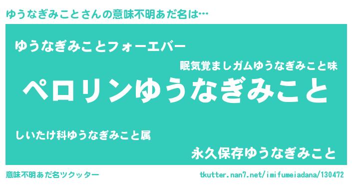 | 伝説のあだ名 | 『伝説のスナイパーゆうなぎみこと』 |
