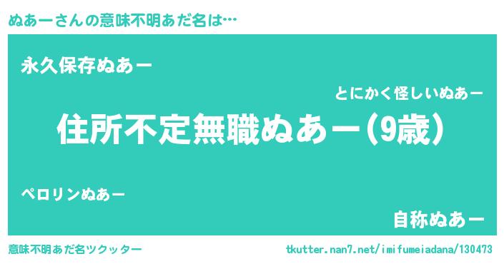 | ヘコむあだ名 | 『ぬあー(笑)』『ぬあを』『ぬあにー』 |