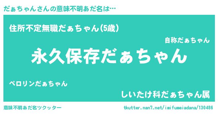 | 男性向けラノベタイトル風あだ名 | 『だぁちゃんという概念が存在しない退屈な世界 』 |