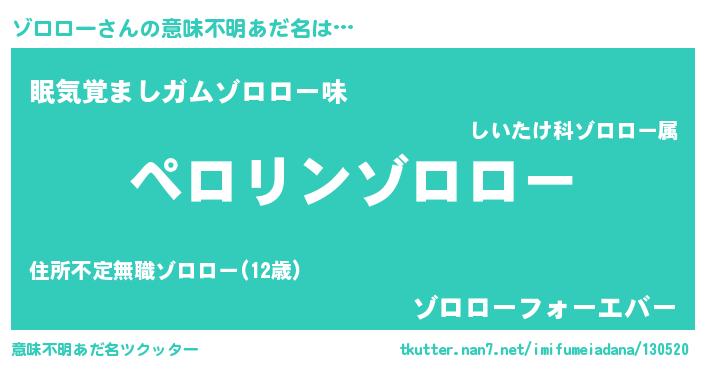 | ヘコむあだ名 | 『ゾロにー』『豆乳』『ゾロっちょ』 |