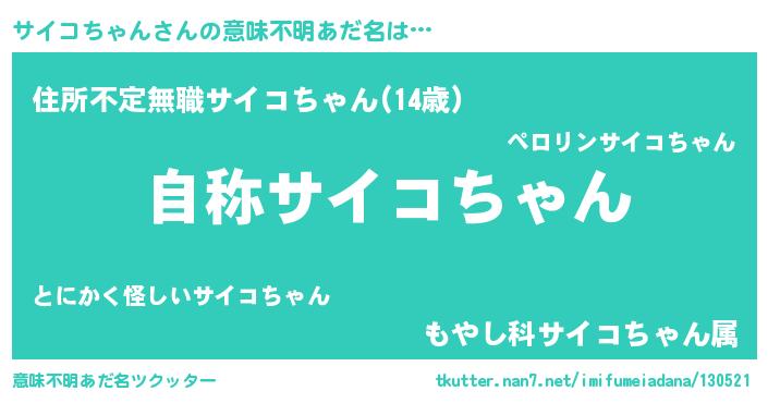 | 男性向けラノベタイトル風あだ名 | 『Re:サイコちゃんから始める異世界生活』 |