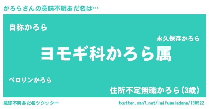 | ヘコむあだ名 | 『かろら(笑)』『かろにゅー』 |