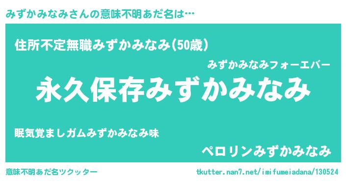 | ヘコむあだ名 | 『みずかみなみ(笑)』『みずにゅー』 |