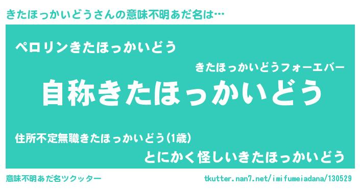 | ヒーロー風カッコイイあだ名 | 『究極戦士キタホッカイドウ』 |