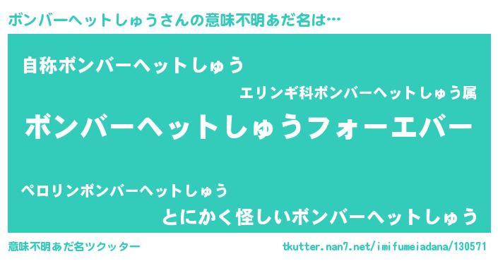 | ファンタジー風あだ名 | 『エターナルボンバーヘットシュウー』 |