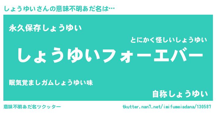 | 欧米人風あだ名 | 『しょうゆいクリステル』 |