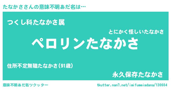 | 欧米人風あだ名 | 『マイケルたなかさ』『ウサインたなかさ』 |