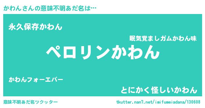 | 胡散臭い通販商品みたいなあだ名 | 『必ず成功する霊験あらたかなお札…その名も「かわん」』 |