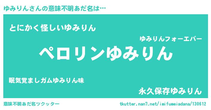 | 胡散臭い通販商品みたいなあだ名 | 『必ず成功するブレスレット…その名も「ゆみりん」』 |