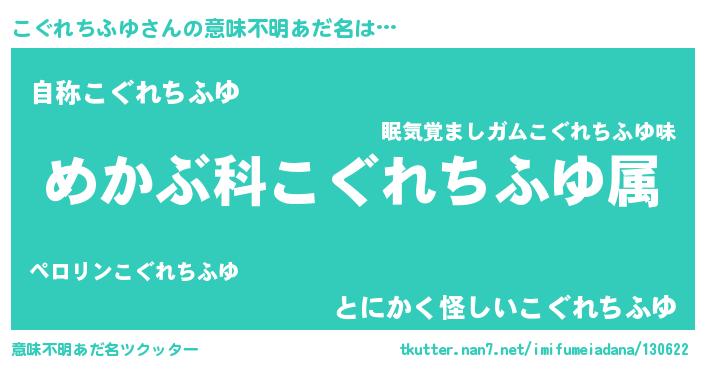 | 男性向けラノベタイトル風あだ名 | 『コグレチフユスレイヤー』 |