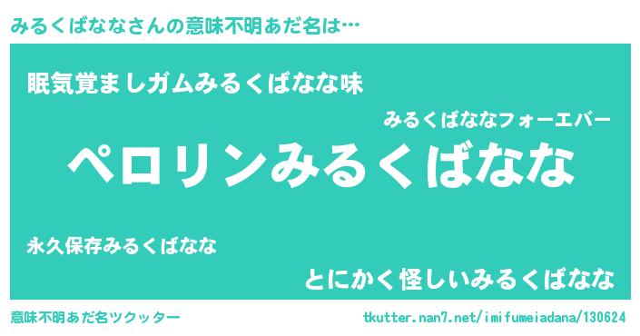 | 胡散臭い通販商品みたいなあだ名 | 『億万長者になれるブレスレット…その名も「みるくばなな」』 |