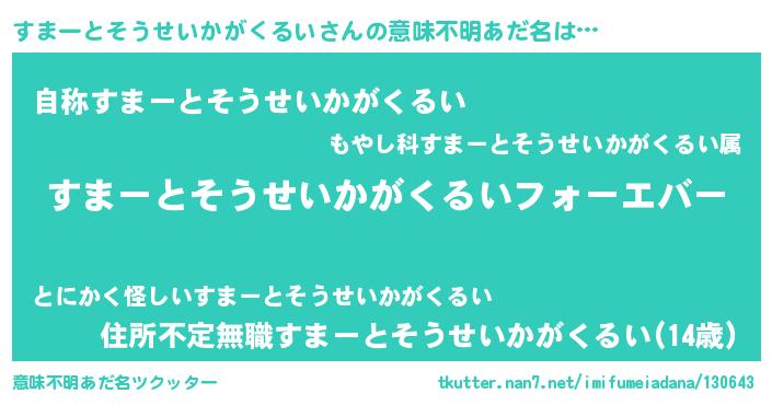 | 女子向けラノベタイトル風あだ名 | 『すまーとそうせいかがくるいの雑貨屋さん』 |