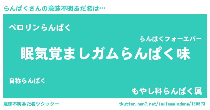 | ヒーロー風カッコイイあだ名 | 『正義の使者らんぱく』『ネオランパク』 |