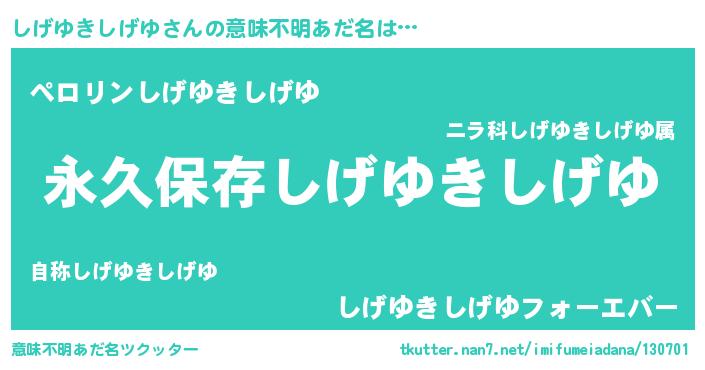 | 胡散臭い通販商品みたいなあだ名 | 『来世でも幸せになれる水素水…その名も「しげゆきしげゆ」』 |