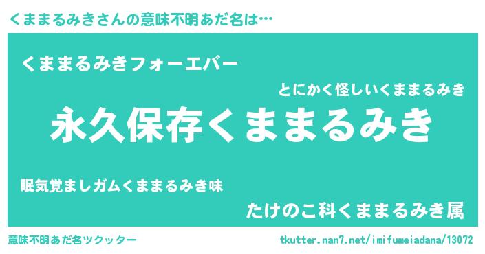 | ヘコむあだ名 | 『くままるみき(苦笑)』『つくし』 |